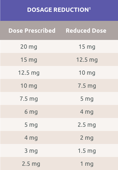 If the patient experiences adverse reactions that require dosage reduction during treatment, the daily dose should be reduced to the next lower dosage. Additional dose reductions should occur if adverse reactions continue to be intolerable.